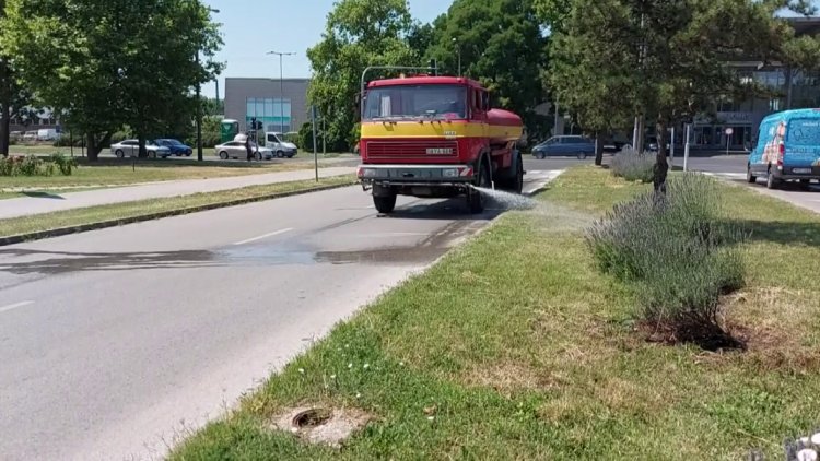 Ismét kánikula van Nyíregyházán is, ezért a városüzemeltetési társaság folyamatosan locsolja a zöldfelületeket a város különböző pontjain.