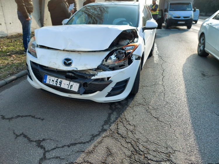 Egy személyautó le akart kanyarodni a Krúdy Gyula utcára, ezért megállt, a mögötte érkező kishaszonjármű ezt észlelve szintén megállt, azonban a mögöttük érkező autós későn reagált, nekiment a kishaszonjárműnek és összetolta a járműveket. Több millió forintos anyagi kár keletkezett. A rendőrség intézkedett.