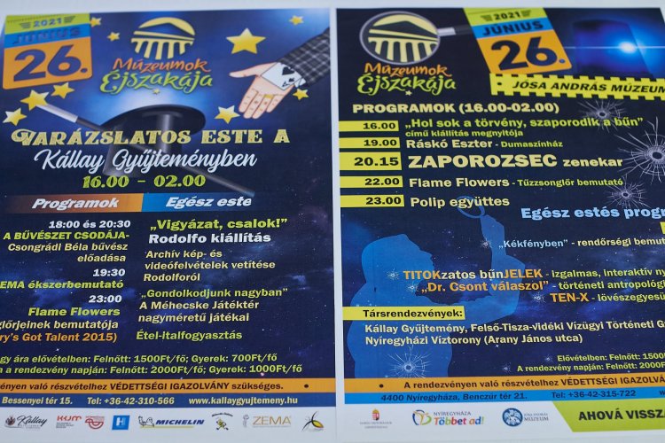 Múzeumok Éjszakájára várják a látogatókat a Jósa András Múzeumban és a Kállay Gyűjteményben is. A krimi, a bűncselekmények és a bűvészet – ezek a 2021-es központi témái a nyíregyházi kulturális intézményekben. A belépéshez továbbra is szükséges a védettségi kártya, a vendégek egy jeggyel látogathatják a múzeumot és a gyűjteményt is.