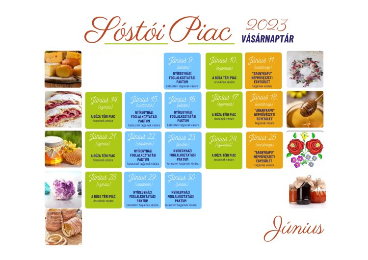 2023. június 09. napjától ismét nyit a Sóstói Piac a Blaha Lujza sétány melletti szökőkút környezetében.