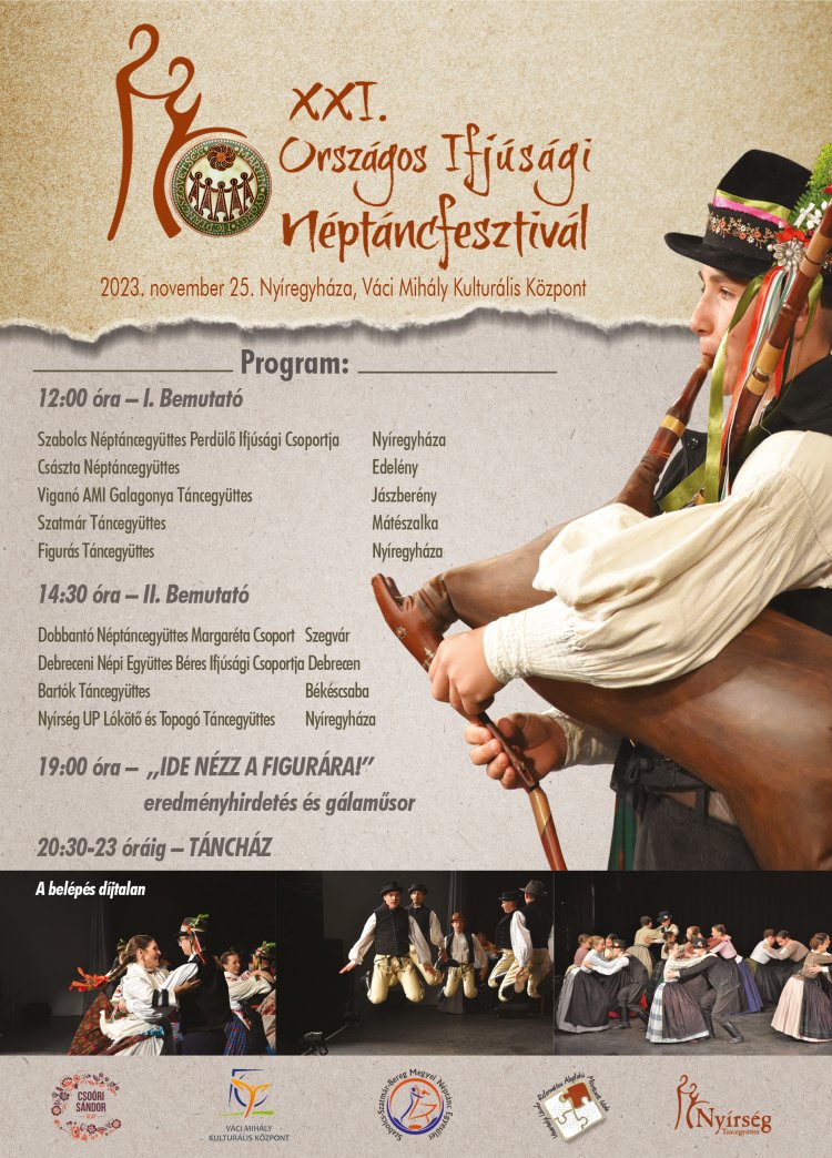 November 25-én, szombaton: XXI.. Országos Ifjúsági Néptáncfesztivál Nyíregyházán lesz, a Váci Mihály Kulturális Központban!
