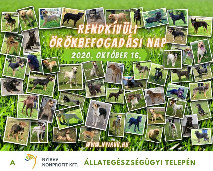 2020. október 16-án 8 és 18 óra között ismét Rendkívüli Örökbefogadási Napot tartanak a NYÍRVV Nonprofit Kft. Állategészségügyi Telepén.