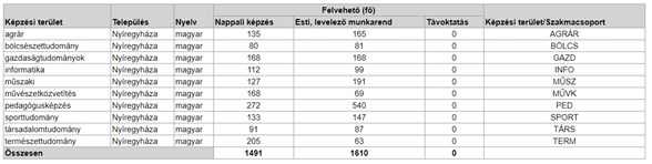 A Nyíregyházi Egyetemre összesen 3101-en kerülhetnek be, nappali képzésen 1491-en, esti és levelező munkarendben 1610-en kezdhetik meg a tanulmányaikat szeptembertől.
