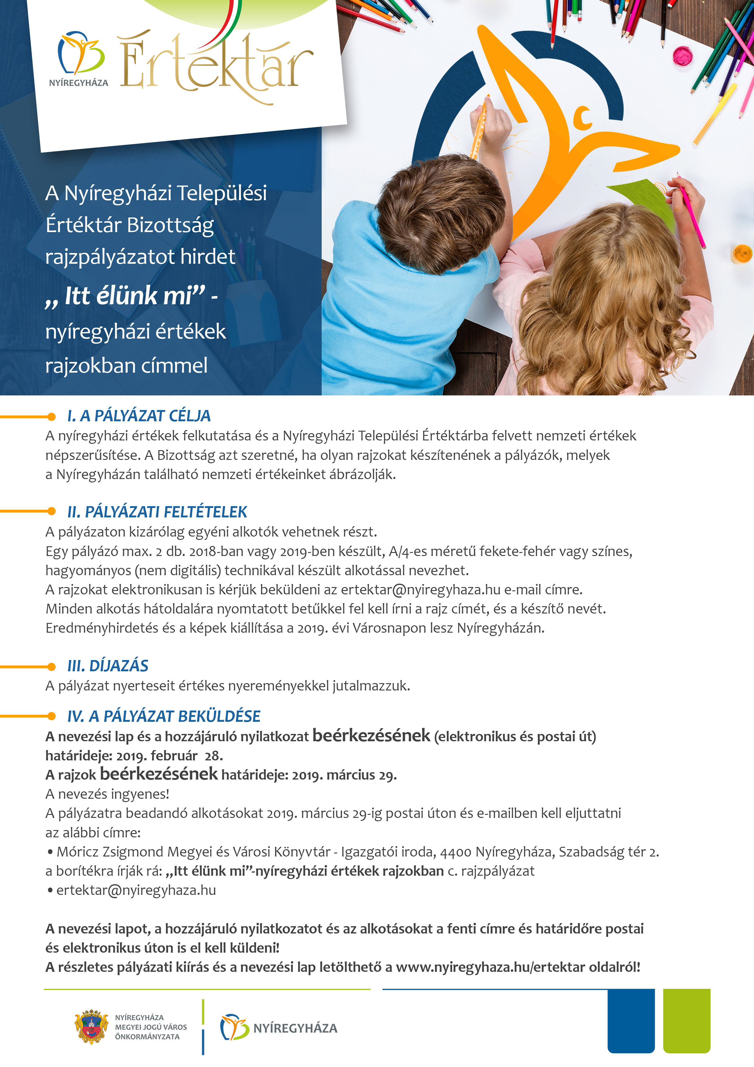 A Bizottság azt szeretné, ha olyan rajzokat készítenének a pályázók, melyek a Nyíregyházán található nemzeti értékeinket ábrázolják.