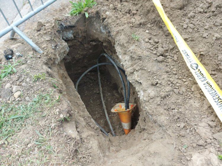 Cserélik a közvilágítási oszlopokat a Garibaldi és a Korányi Frigyes utca kereszteződésében.