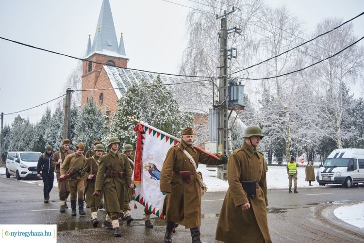 Csütörtök délelőtt tíz óra előtt érkezett meg a tízfős, hagyományőrzőkből álló emlékmenet Nyírszőlősre. A Vörös Hadsereg második világháborús támadása 1943. január 12-én kezdődött meg a Don-kanyarban, a mínusz negyven fokos hidegben. 78 évvel ezelőtt 200 kilométeres frontvonalszakaszt védtek a bakák, erre emlékeznek évről évre a menet résztvevői, idén már kilencedik alkalommal.