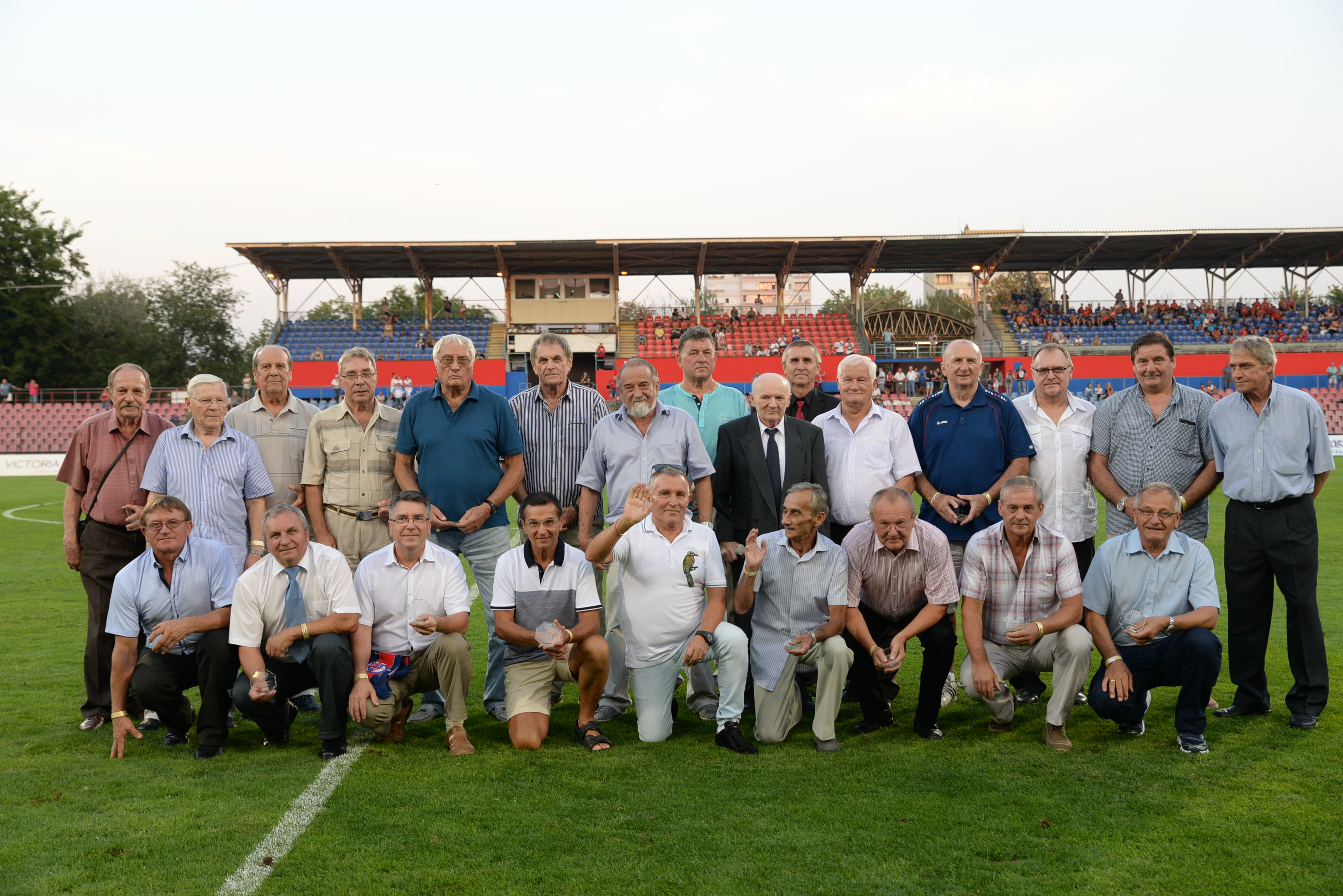 A szünetben az 1980-as, NB-I-be jutott csapat legendás tagjait köszöntötték.