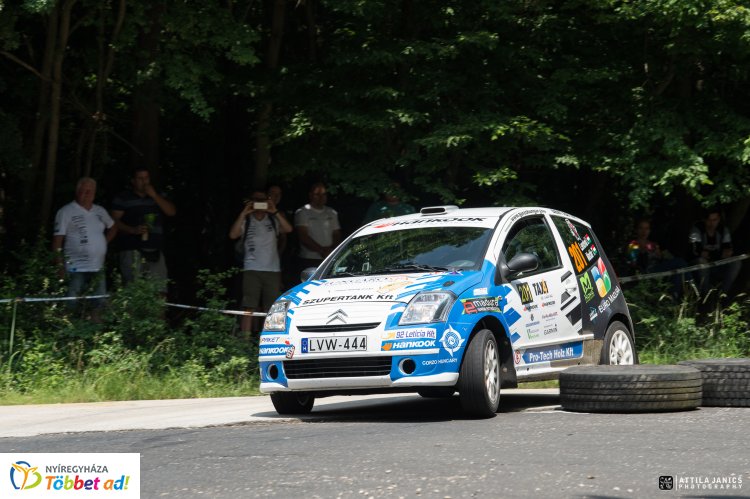 - A pályabejárást nem tudtuk időben elkezdeni mivel én is és navigátorom is egyéb elfoglaltságok miatt nem tudtunk elindulni pénteken. A pályát 60km/h-val lehetett bejárni és maximum 3-szor. De úgy voltunk vele hogy megoldjuk mint eddig mindent. Másnap már az első gyorsaságin láttuk hogy amitől féltünk, az be is következett. Az eddigi legrosszabb itinert diktáltam fel a pályabejárás során. Utána már csak egy célunk volt, hogy nyomjuk ahogy csak tudjuk és szerezzük a pontokat a bajnokságba. A verseny közben volt egy kuplung problémánk is a 2. gyorsaságin, de a fiúk a szervízben orvosolták a problémát. A szervízelés után akartunk gyorsulni, ami nagyjából sikerült is. Jobb időket mentünk mint az előző körben, de még akkor sem voltunk elégedettek az eredménnyel. Rendkívül szoros csata alakult ki, a verseny végére tizedek döntötték el a végeredményt. Az utolsó gyorsaságin feltettünk mindent egy lapra, és feljöttünk az abszolút 4. és kategória 2.helyre. Ez a bajnokság szempontjából nem rossz, mert értékes pontokat szereztünk. Szóval az egyik szemünk sír a másik nevet. Szerettünk volna jobb eredményt elérni, de ez most így sikerült. A következő versenyünk a Veszprém Rally lesz július első hetében - mondta Lendvai István.