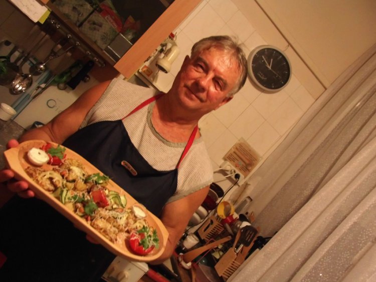 – Nekem a sütés-főzés lett az utóbbi években a hobbim. Évekkel ezelőtt elindítottam a Facebookon egy „blogot”, egy darabig „Vacsiötlet” volt a neve, aztán ahogy jöttek az unokák, „Jancsi papa és kiskuktái” néven futott, majd lett „Lakásétterem”, most pedig, hogy két hete önkéntes karanténban vagyok, és nincsenek itt az unokáim, „Jancsi papa menüajánlata a karanténból” címmel jelentkezem.