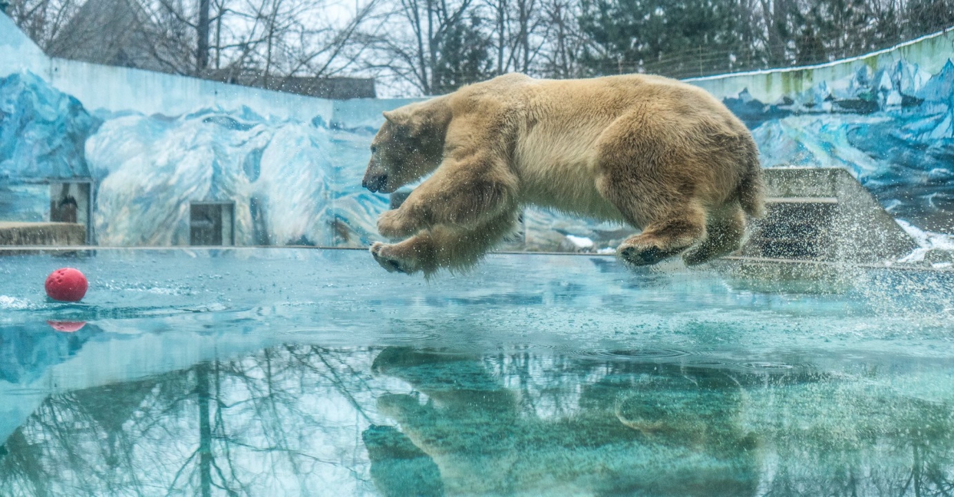 Januári csobbanás – Így élvezi a telet a Nyíregyházi Állatpark jegesmedvéje