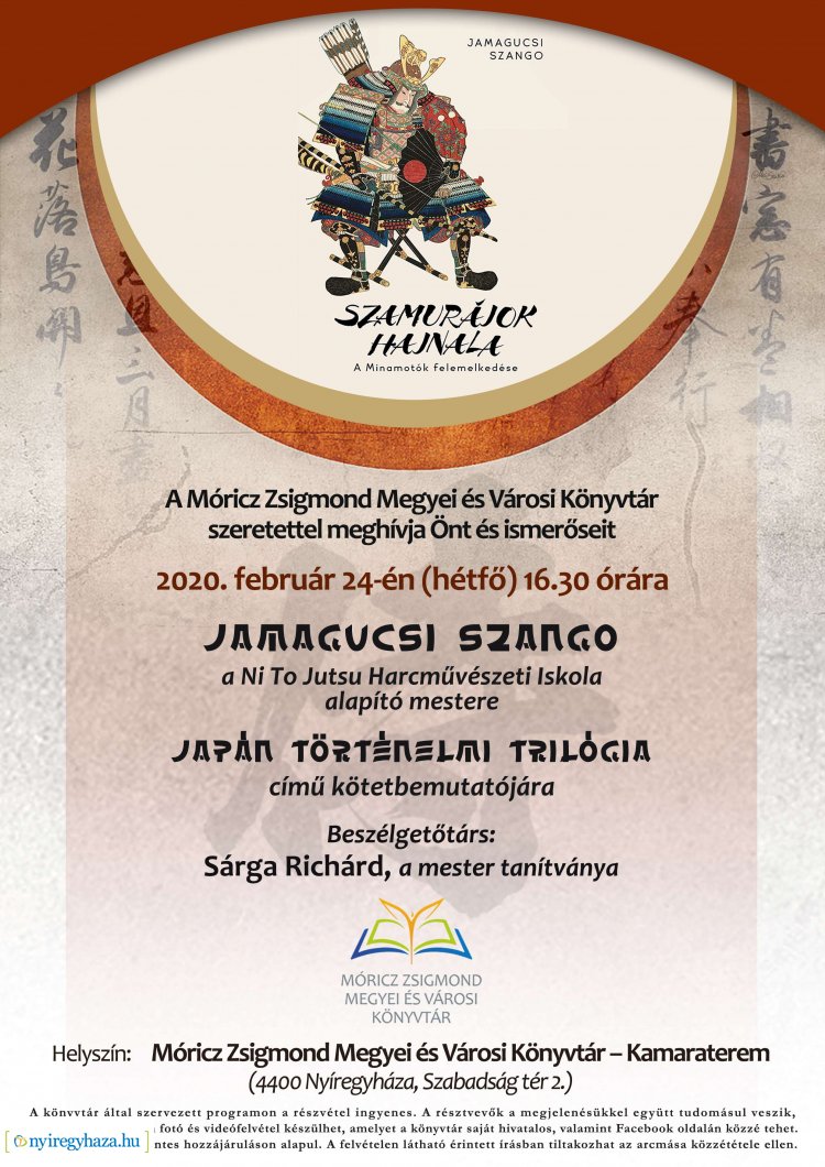 Japán történelmi trilógia - Jamagucsi Szango kötetbemutatója a Móricz Zsigmond könyvtárban