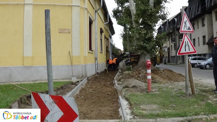 Járdaépítést végeznek Nyíregyházán a Kiss Ernő utcán a Tolditól a Deák Ferenc utcáig