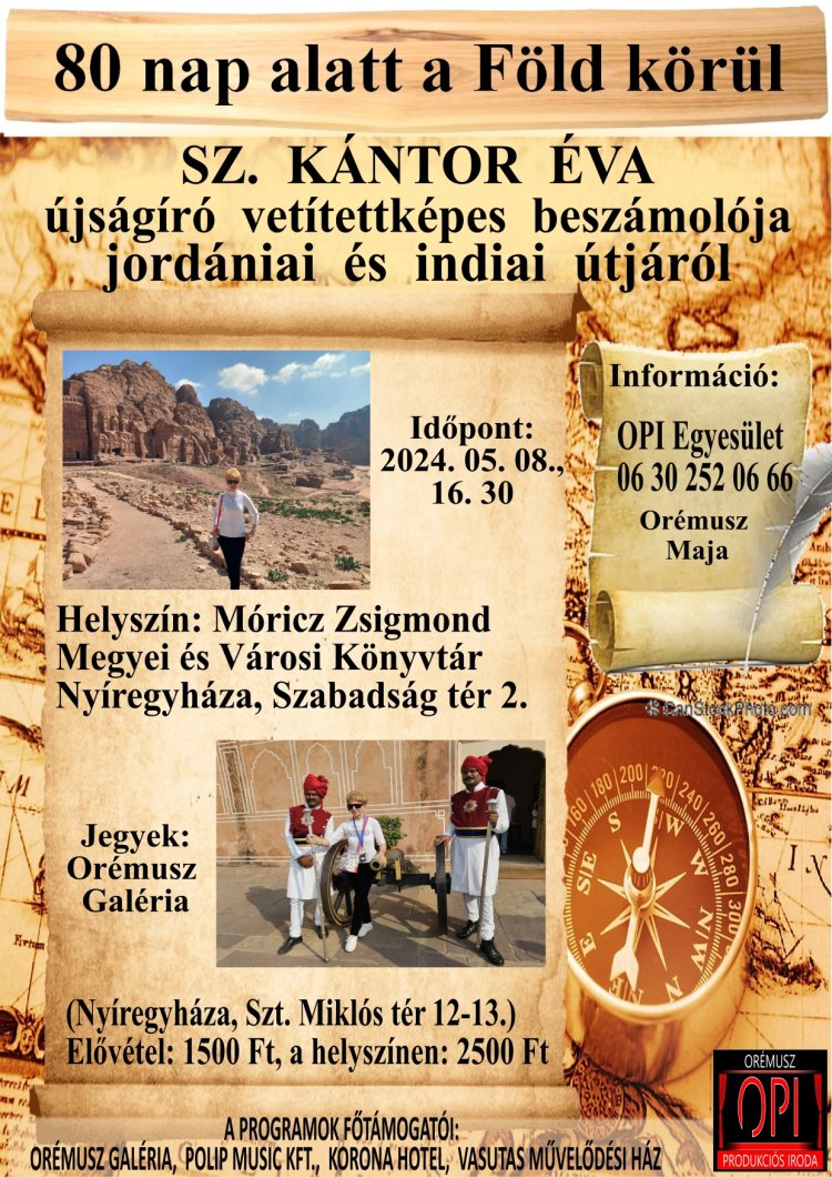Jordániai és indiai élményeiről tart vetítettképes előadást Sz. Kántor Éva újságíró május 8-án, szerdán 16.30-tól a Móricz Zsigmond Megyei és Városi Könyvtárban.