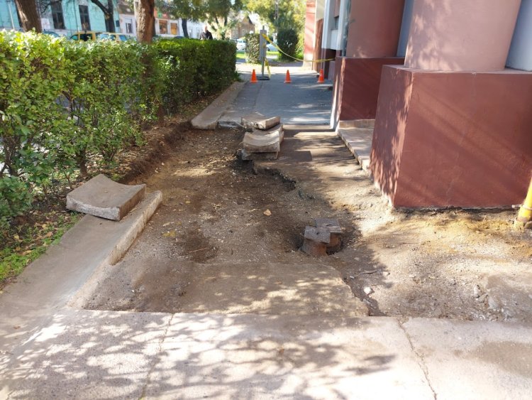Megkezdődött a járda helyreállítása a Bethlen Gábor utca 29. szám előtt, a Víz utca kereszteződésnél.
