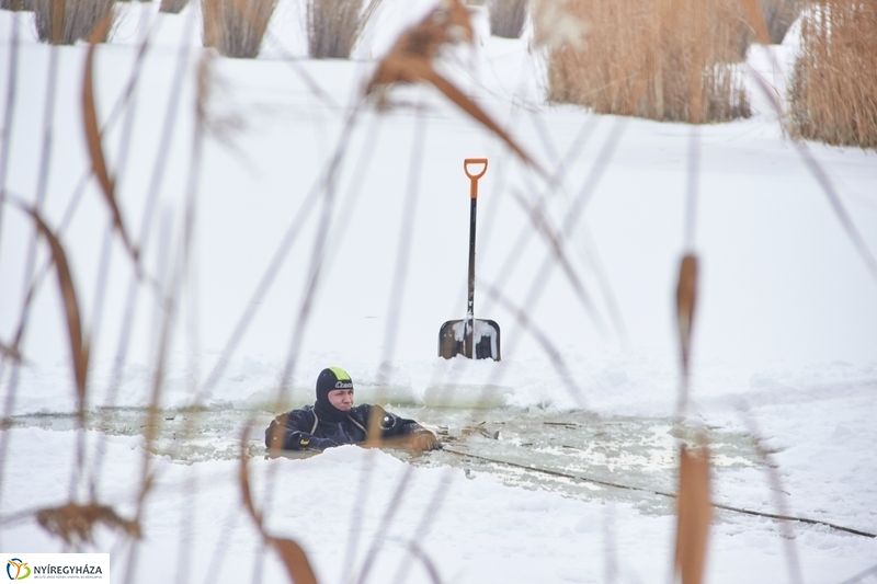 Jégről mentési gyakorlatot tartottak a Bujtosi tavon. Nézze meg felvételeinket!