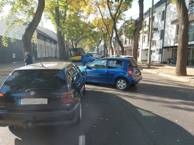 Szombaton a Dózsa György utcán a leállósávból kikanyarodott egy autó, mely összeütközött egy ott haladó másik járművel.