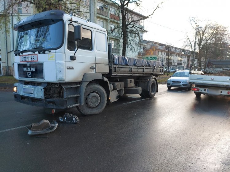 Kedden a Kállói úton egy kishaszonjármű az Állj! Elsőbbségadás kötelező táblánál nem adott elsőbbséget egy teherautónak és összeütköztek.