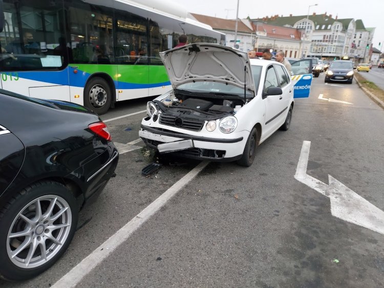 Pénteken délután a Kossuth utca és a Rákóczi utca kereszteződésében a jelzőlámpánál jelentős anyagi kárral járó utoléréses baleset történt.