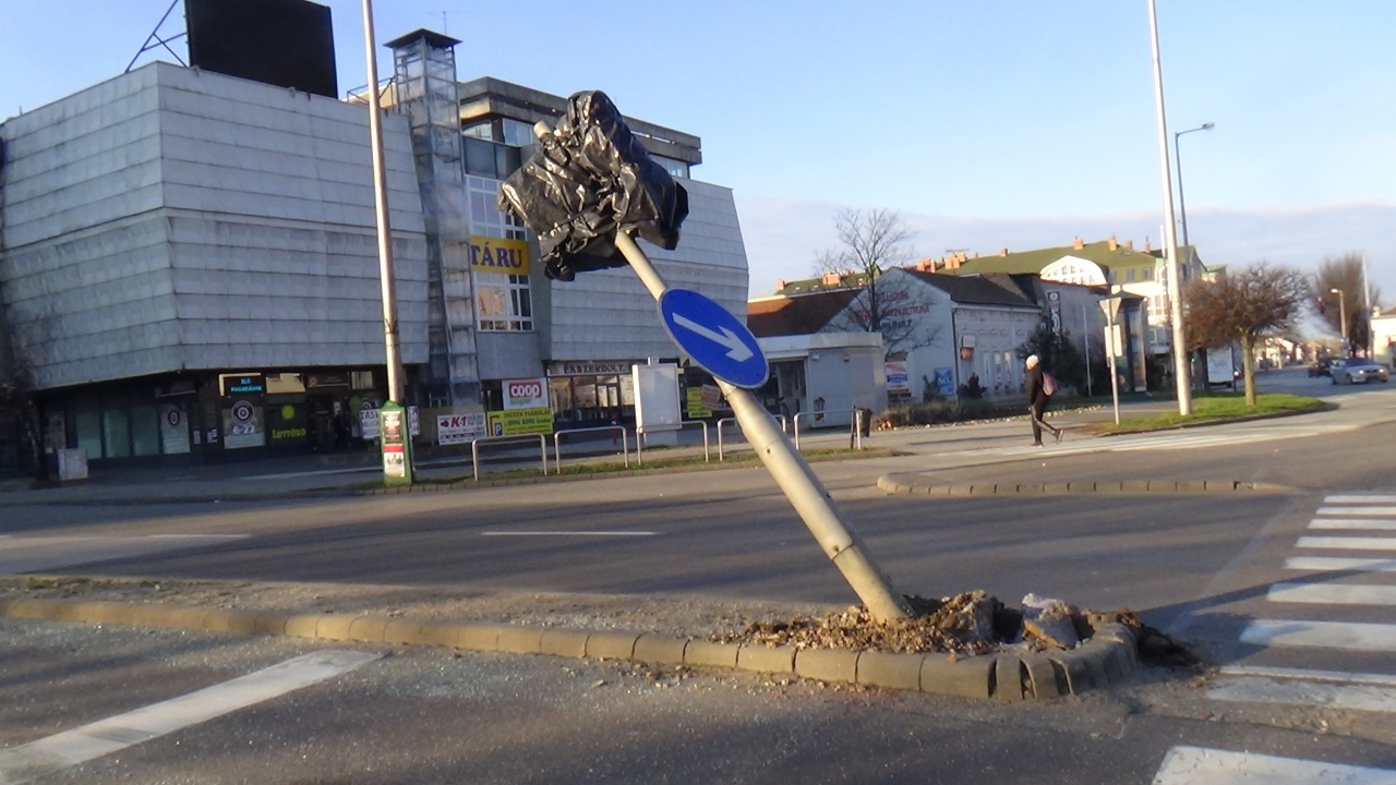 Jelzőlámpának ütközött egy személygépkocsi a belvárosban, jelentős az anyagi kár