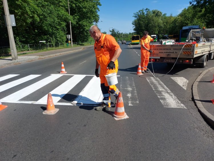 A kórház és az egészségügyi főiskola között a gyalogátkelőhelyeket festették át.