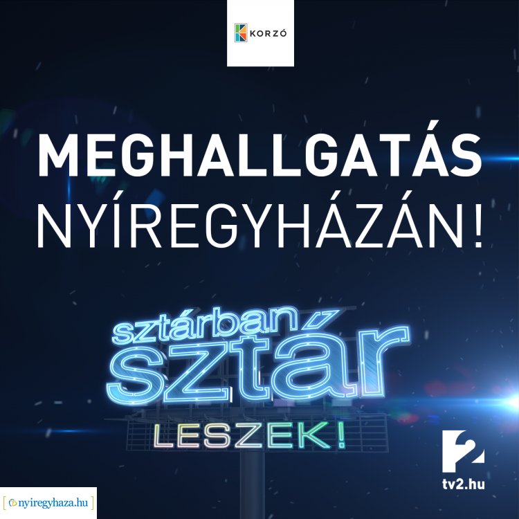 Nincs más dolgod, mint eljönni február 3-án 16 és 20 óra között a Sztárban sztár leszek legújabb meghallgatására Nyíregyházára, a Korzó Bevásárlóközpont A épület 1. emeletére.