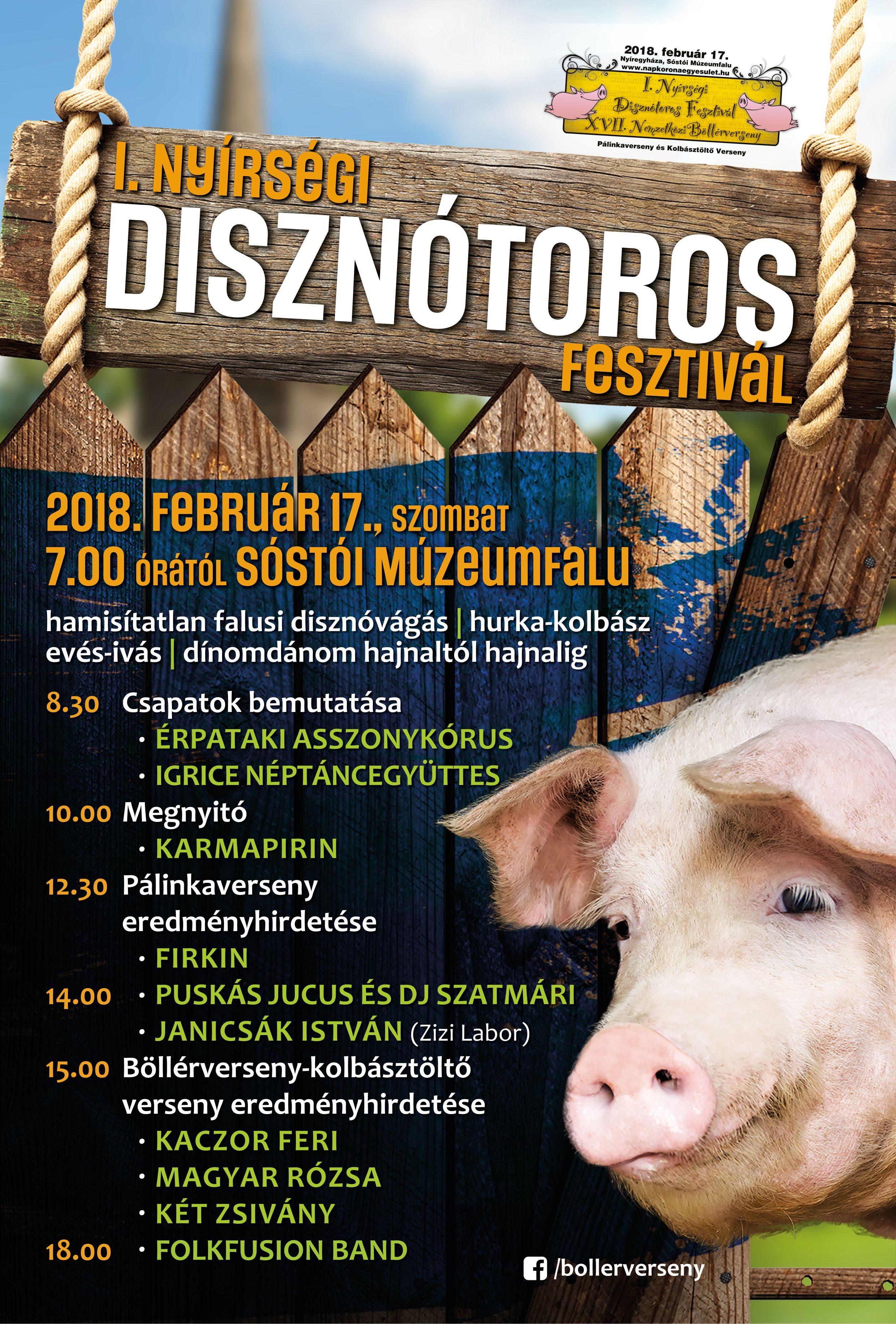 Az I. Nyírségi Disznótoros Fesztivál a 17. Nemzetközi Böllérversennyel együtt kerül megrendezésre február 17-én a Sóstói Múzeumfaluban.