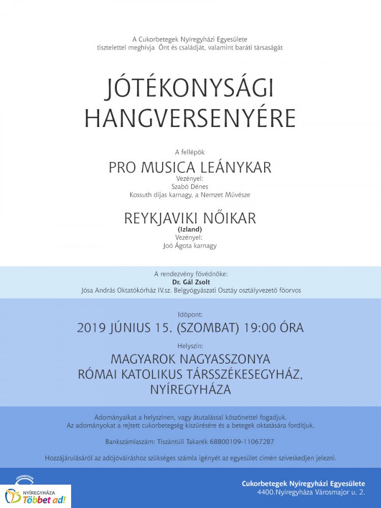 A Pro Musica Leánykar és a Reykjaviki Női Kar ad jótékonysági hangversenyt június 15-én, a nyíregyházi Magyarok Nagyasszonya-társszékesegyházban.