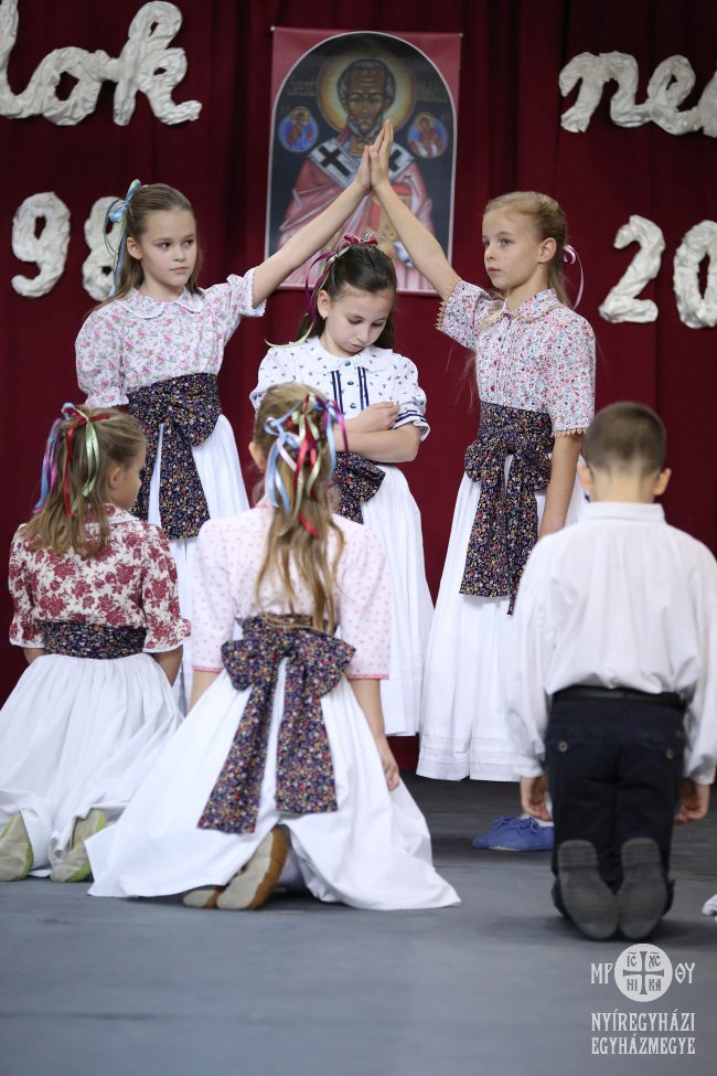 A színvonalas műsorban helyet kapott a Muzsika Zeneiskola fuvola kamarazenekara, a pedagógusok kórusa, a gyermekek szavalatai, az iskola diákjainak produkciói: a Miklós püspök életéről szóló jelenet, az 1. osztályosoknak a Vásárhelyi László Művészeti Iskolával közös produkciója, a klarinét kamarazenekar muzsikája, a Glória Kicsinyek Kórusa, az iskolai csibeavató legjobban sikerült táncos-mozgásos előadása.