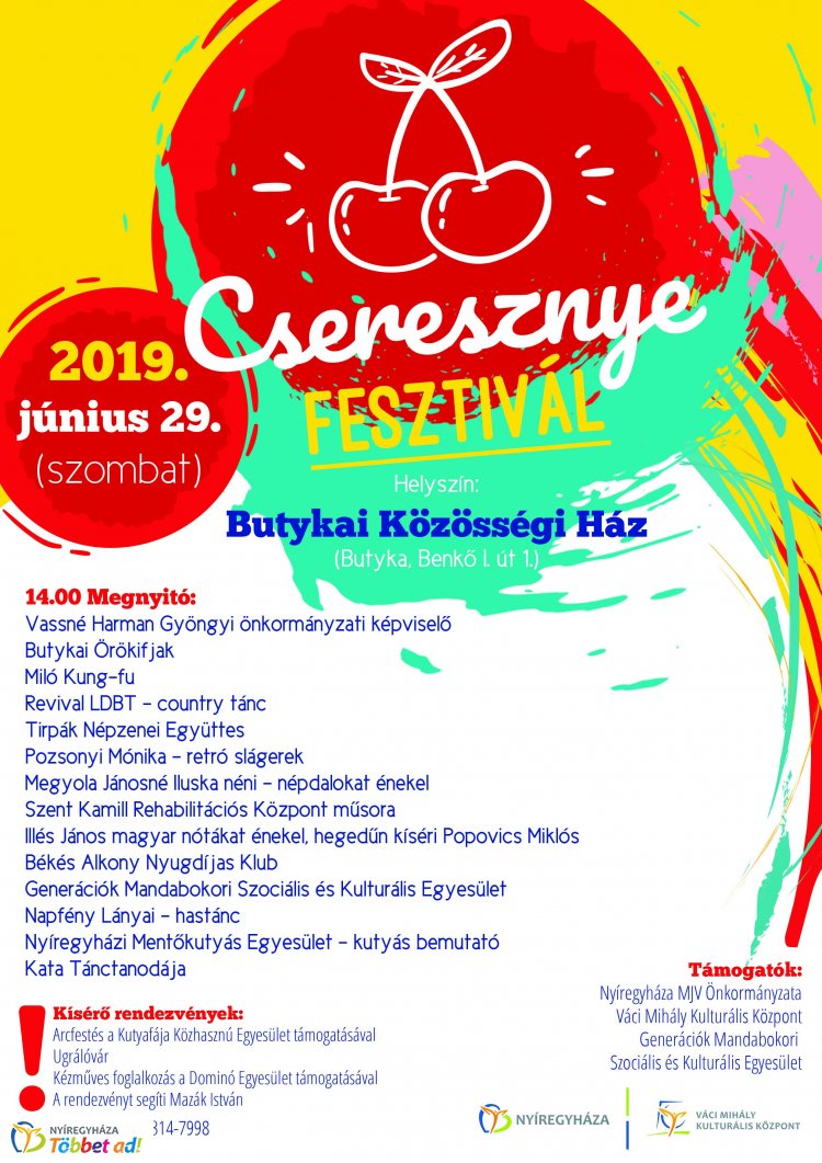 Jó szórakozást ígér a hagyományos butykai Cseresznye Fesztivál, június 29-én. A városrész lakóit 14 órától a Benkő I. u. 1. sz. alatti közösségi házban várják.