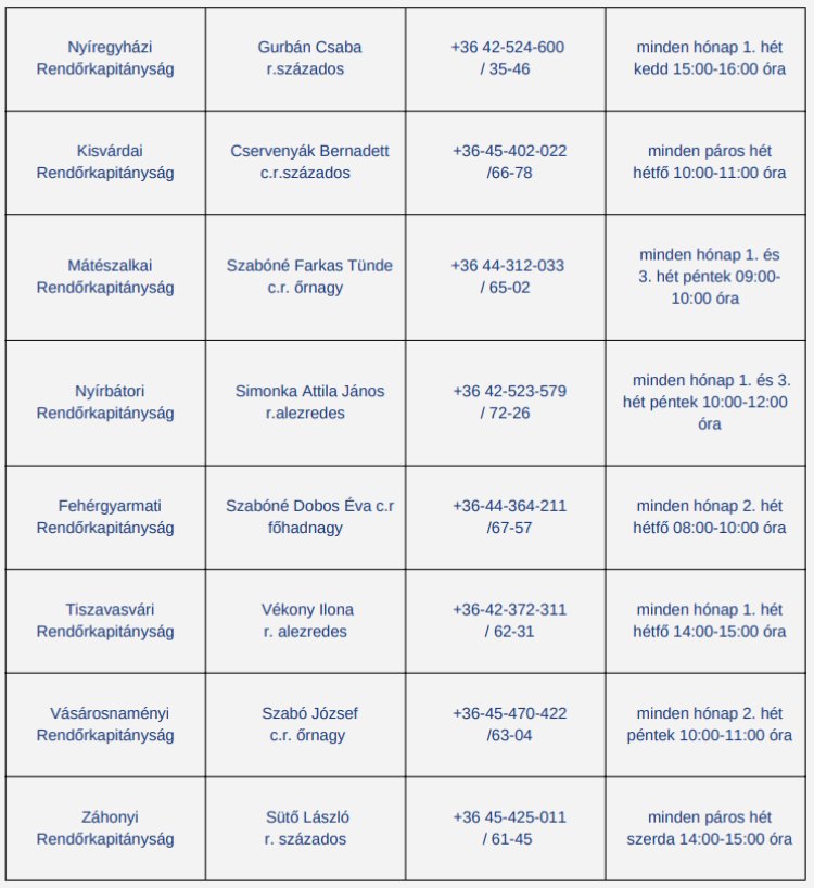 Forrás: Szabolcs-Szatmár-Bereg Vármegyei Rendőr- főkapitányság