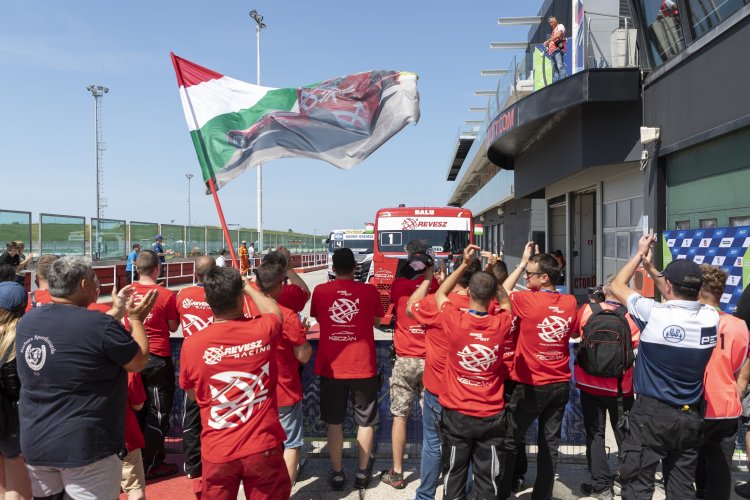 Az első napi győzelem és harmadik hely után vasárnap is remekelt Kiss Norbert, a Révész Racing háromszoros Európa-bajnok kamionversenyzője Olaszországban. Ezúttal is a magyar pilóta volt a leggyorsabb az időmérő edzésen, így az első rajthelyről startolhatott. A rajt jól sikerült, és Jochen Hahnt maga mögött tartotta Norbi, és ezúttal is rajt-cél győzelmet aratott.
