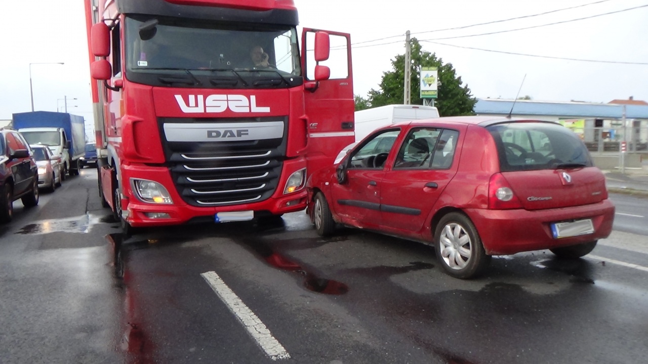 Csütörtökön késő délután a Debreceni út kivezető szakaszán egy kamionos figyelmetlenül váltott sávot és a mellette haladó személygépkocsi maga elé fordította.