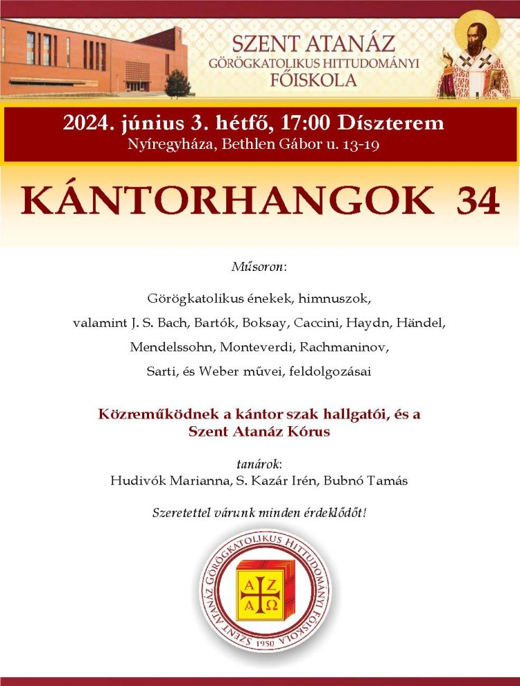 Június 3-án (hétfőn) 17.00 órakor kántor szakos hallgatóink hagyományosan megrendezendő év végi vizsgakoncertjére várják az érdeklődőket a Szent Atanáz Görögkatolikus Hittudmányi Főiskola dísztermébe.