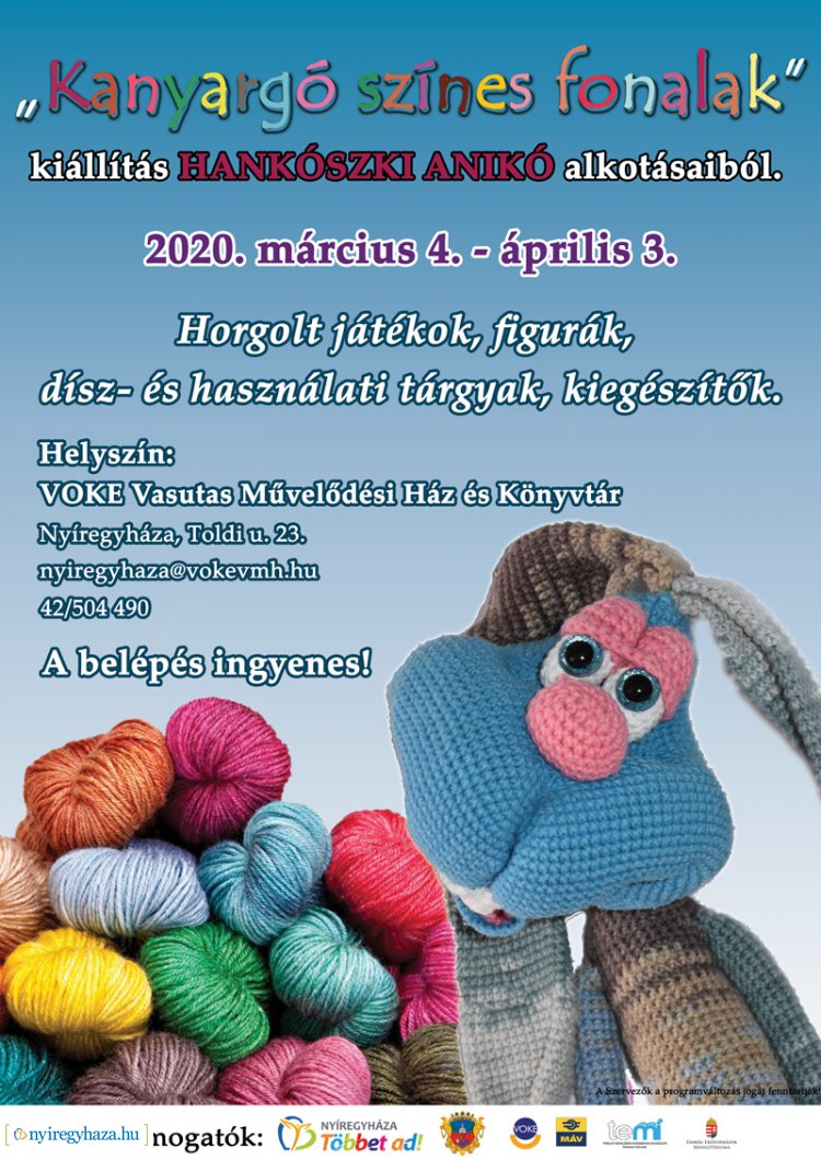 Március 4. és április 3. között Kanyargó színes fonalak címmel kiállításnak ad helyet a VOKE Vasutas Művelődési Ház és Könyvtár.