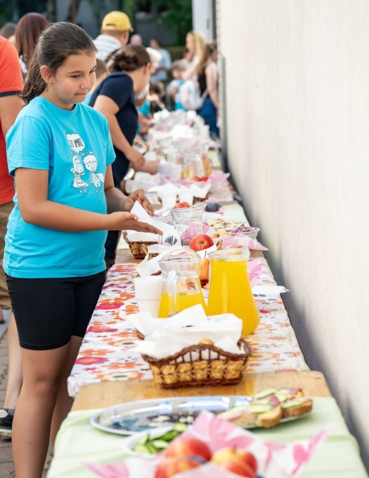 A nyugdíjba vonuló Tormássiné Kapitány Ágothát váltó főigazgató, Tamás Éva, valamint az intézmény új lelki vezetője, Máté Péter atya köszöntése után a 4. évfolyam meglepetés flashmob produkciójával vette kezdetét a családi piknik. A “nagyok” táncát Tárkányi-Boda Zsuzsanna TRX és Jump fitness edző lelkesítő, bemelegítő gyakorlatai követték.