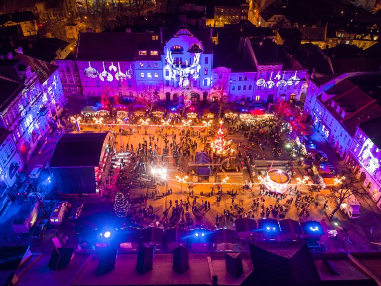 Karácsonyi vásár Bielsko-Białában, 2019, madártávlat @NadDachami