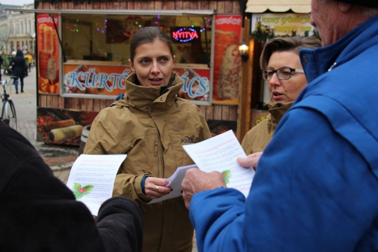 A karácsonyi forgatagban gyalogos szolgálatot ellátó rendőrök munkáját a Szabolcs-Szatmár-Bereg Megyei Rendőr-főkapitányság Bűnmegelőzési Osztályának munkatársai is segítik. A bűnmegelőzési szakemberek szórólapok formájában az év végi ünnepek közeledtével a gyakrabban előforduló bűncselekményekre figyelmeztetik az állampolgárokat. Az egyenruhás rendőrökön kívül civil ruhás nyomozók is figyelnek az emberek biztonságára. Bűnmegelőzési tevékenységet végeznek a közösségi szolgálatot ellátó diákok is, akik elsősorban felvilágosítást nyújtanak, és bűnmegelőzési tanácsokat adnak a helyi lakosságnak és az idelátogató turistáknak - akár idegen nyelven is.