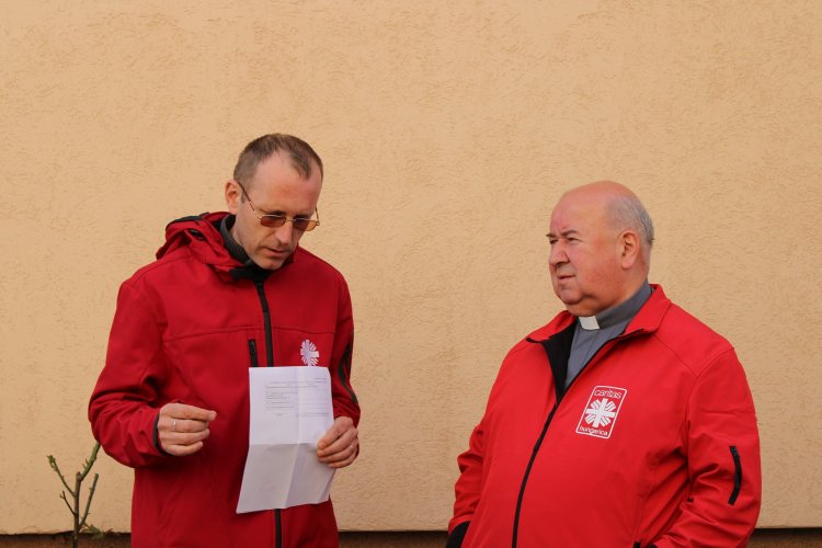 Fehér Ferenc, a Munkácsi Szent Márton Egyházmegyei Karitász vezetője fogadta a segélyszállítmányt a szervezet központjában. Mint elmondta: „Konyháink mindenhol részt vesznek a belső menekültek étkeztetésében is. Köszönjük az ebben való segítséget, mind az alapanyagokban, mind a szállító eszközökben, amit korábban kaptunk. Elhúzódó munkára készülünk, s jelenleg az is probléma, hogy kevesen vagyunk a feladatok ellátására. De kitartunk, reménykedünk, hogy a jelenlegi kapacitásunk elegendő lesz.”