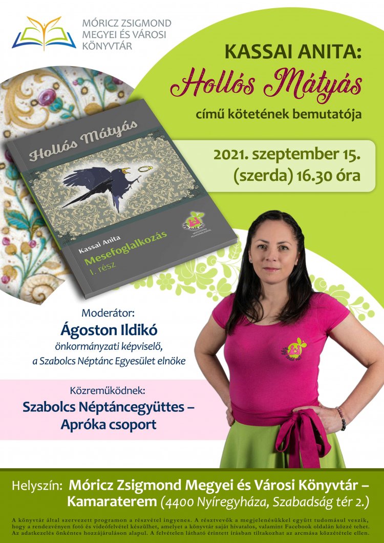 Kassai Anita Hollós Mátyás című kötetének bemutatójára várják az érdeklődőket szeptember 15-én a Móricz Zsigmond Megyei és Városi Könyvtárban.