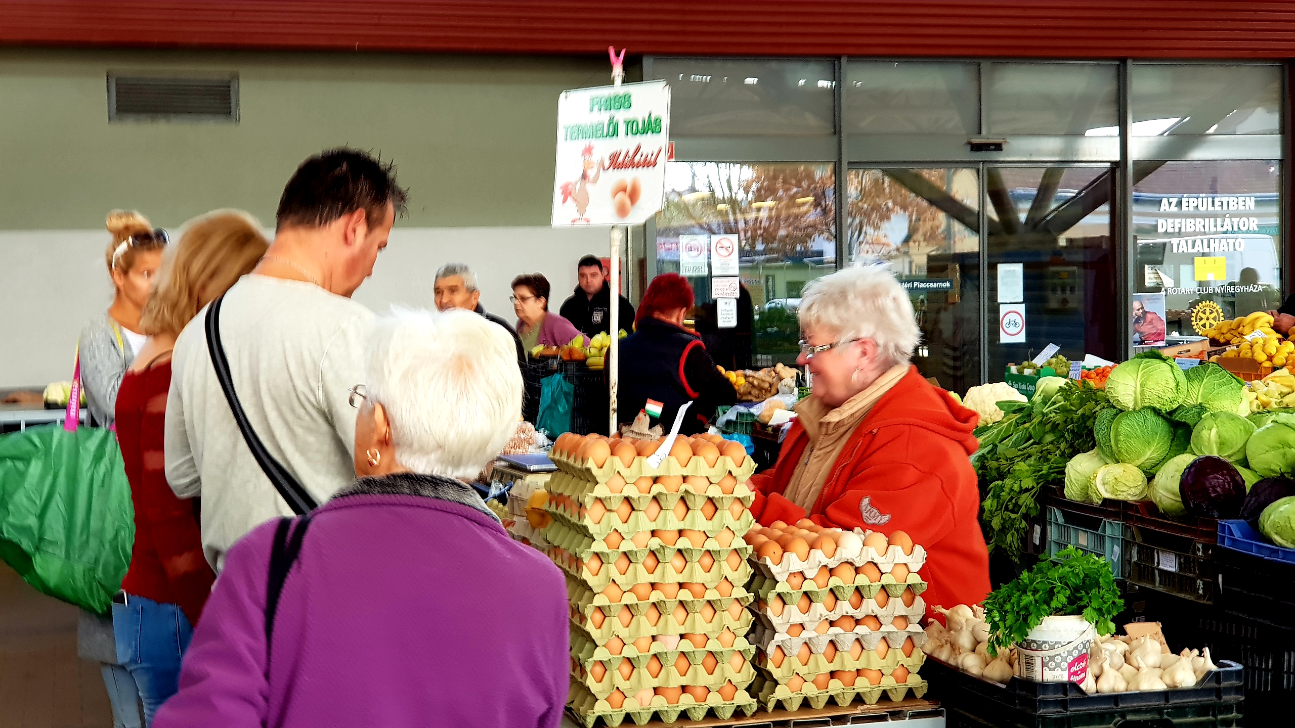 Sok árus és sok vásárló. A legtöbb termék a Nyíregyházi és környékbeli őstermelőktől származik. Ezért is vásárolnak sokan szívesen a Búza téri piaccsarnokban.