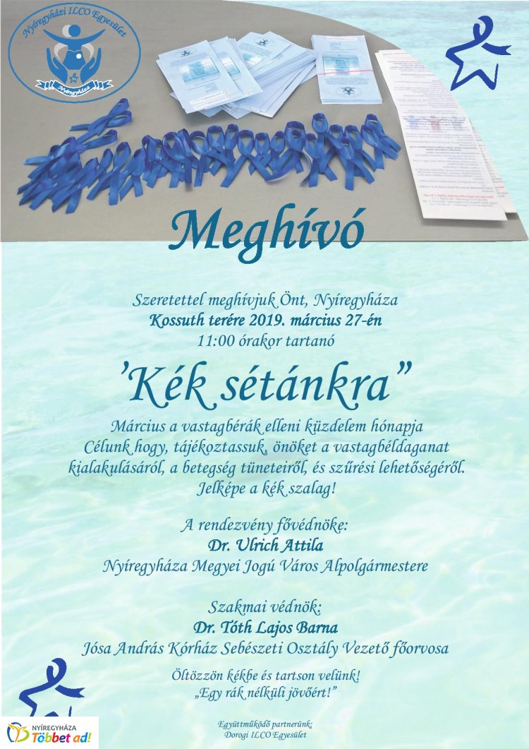 A sétával a vastag és végbélrák megelőzésére, kialakulására, a betegség veszélyeire, tüneteire hívja fel a figyelmet a Nyíregyházi ILCO Egyesület tagsága, akik meggyógyultunk, vagy küzdenek ennek a ráknak a következményeként!