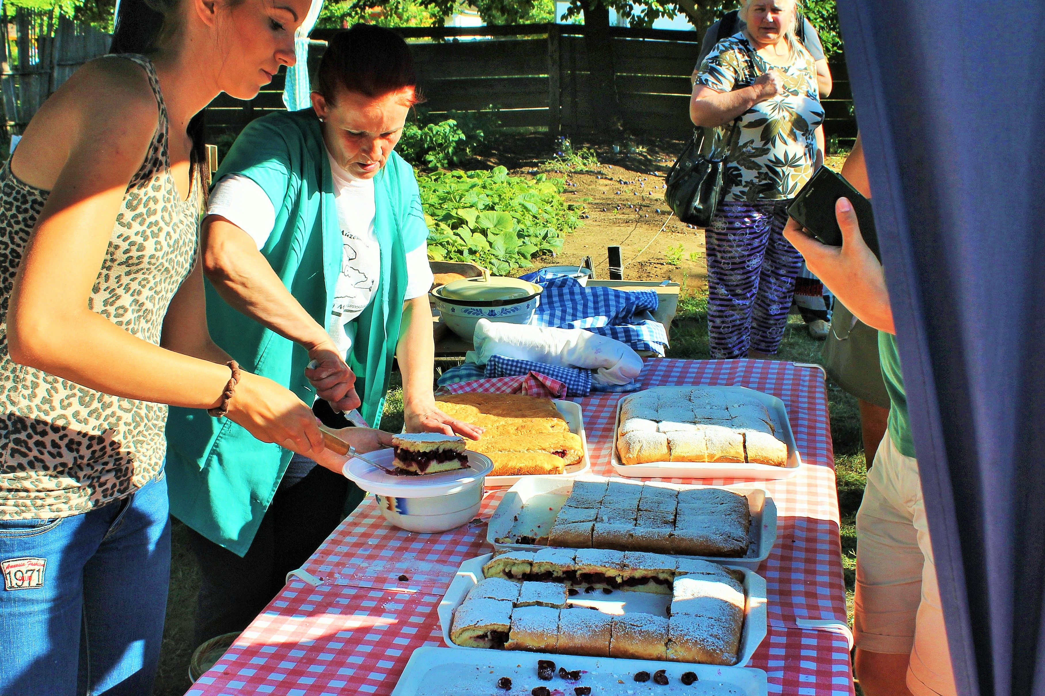 Odaérkezésemkor a meggyleves kínálta magát, ették is jóízűen a népek, az előkészített meggyes sütik tepsiben pihenve várták, amíg a kemencében a fa leég. A pontos receptet nem sikerült leírnom. Kelt tésztához hasonló tésztából készült lepényre várakoztunk, ami régen disznózsírral készült, ma pedig vajjal. Tojás nincs benne.