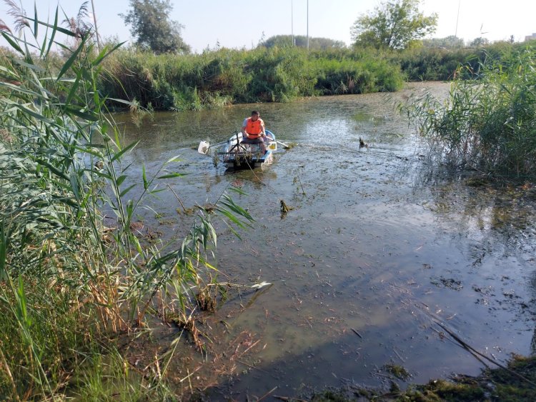 A nagy melegben jelentősen megszaporodott hínárt távolították el a Bujtosi-tóról kedd délelőtt a NYÍRVV szakemberei.