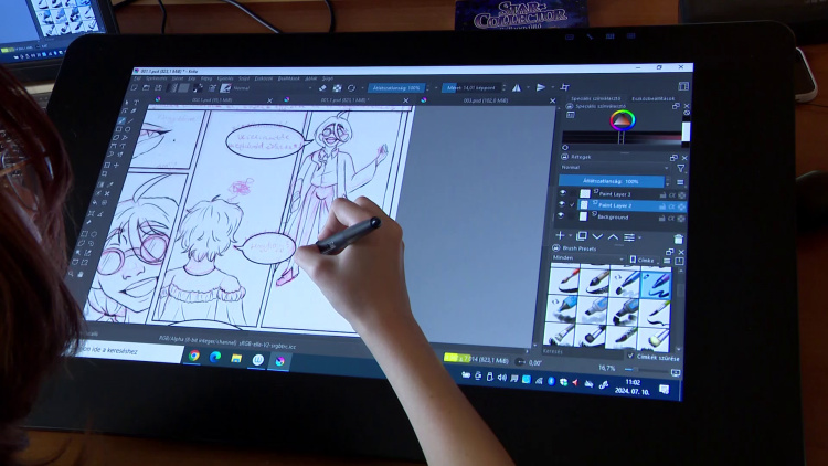 – Nagyon sokan szeretik ezt az alkotói formát – azt, hogy képekben mesélnek el történeteket –, de alapvetően az az érdekes, hogy nem képregényrajzolók akarnak lenni. Tehát nem arról van szó, hogy akik ebbe a táborba jönnek, egyszer híres képregényrajzolók lesznek. Hanem egyszerűen csak szeretik ezt a kifejezési formát – leülnek és kipróbálják magukat. Vannak a mangások, akik ázsiai karakterekkel mesélnek, vannak a szuperhősösök, akik kifejezetten szuperképességekkel rendelkező karakterekben látják a történeteket. S vannak az önéletrajzi ihletésű dolgok, amikor valaki a saját életéből vett történeteket rajzolja le, meséli el – a saját örömeit, bánatait, saját gondolatait, érzéseit. S nagy élmény itt lenni velük és végigbeszélni, mit csinálnak
