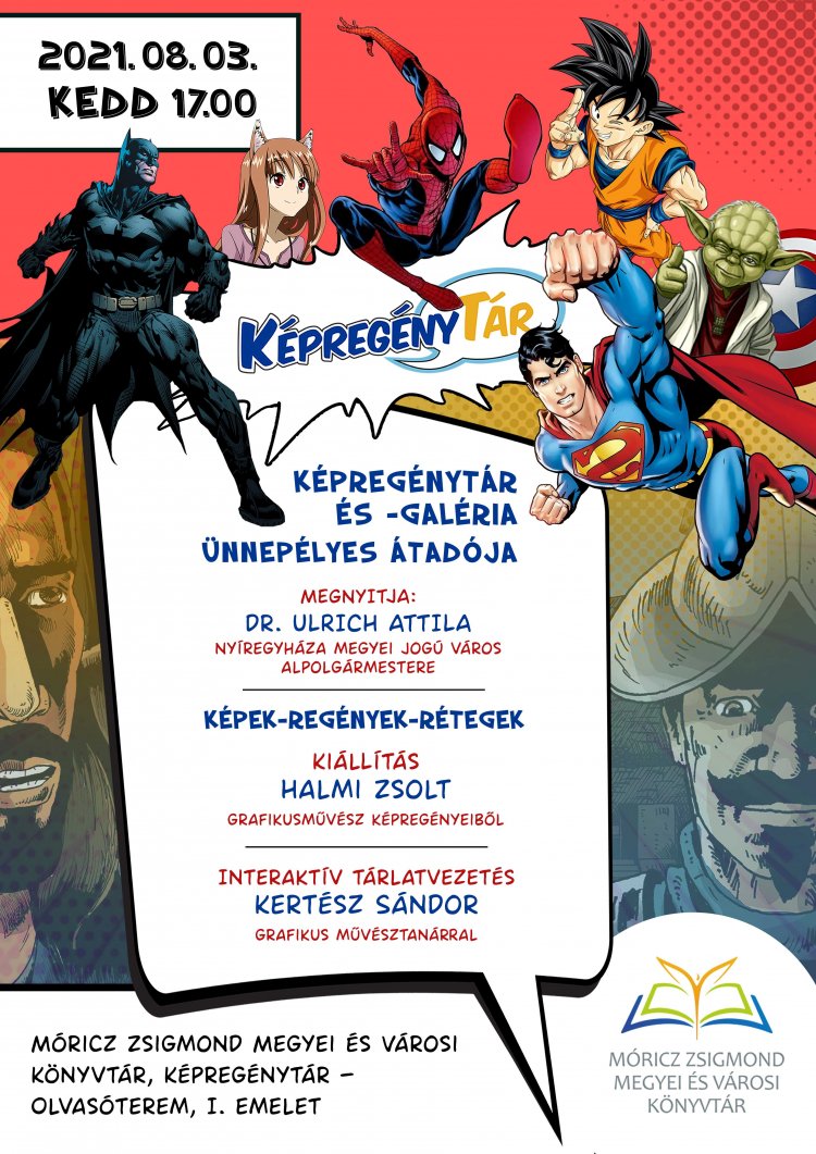 KépregényTárral és - Galériával bővül a Móricz Zsigmond Megyei és Városi Könyvtár kínálata. Az új részleget augusztus 3-án adják át a nagyközönség számára. Az átadó ünnepségen Halmi Zsolt grafikusművész képregényeiből kiállítás is nyílik, valamint Kerzész Sándor grafikus művésztanár interaktív tárlatvezetéssel várja az érdeklődőket.