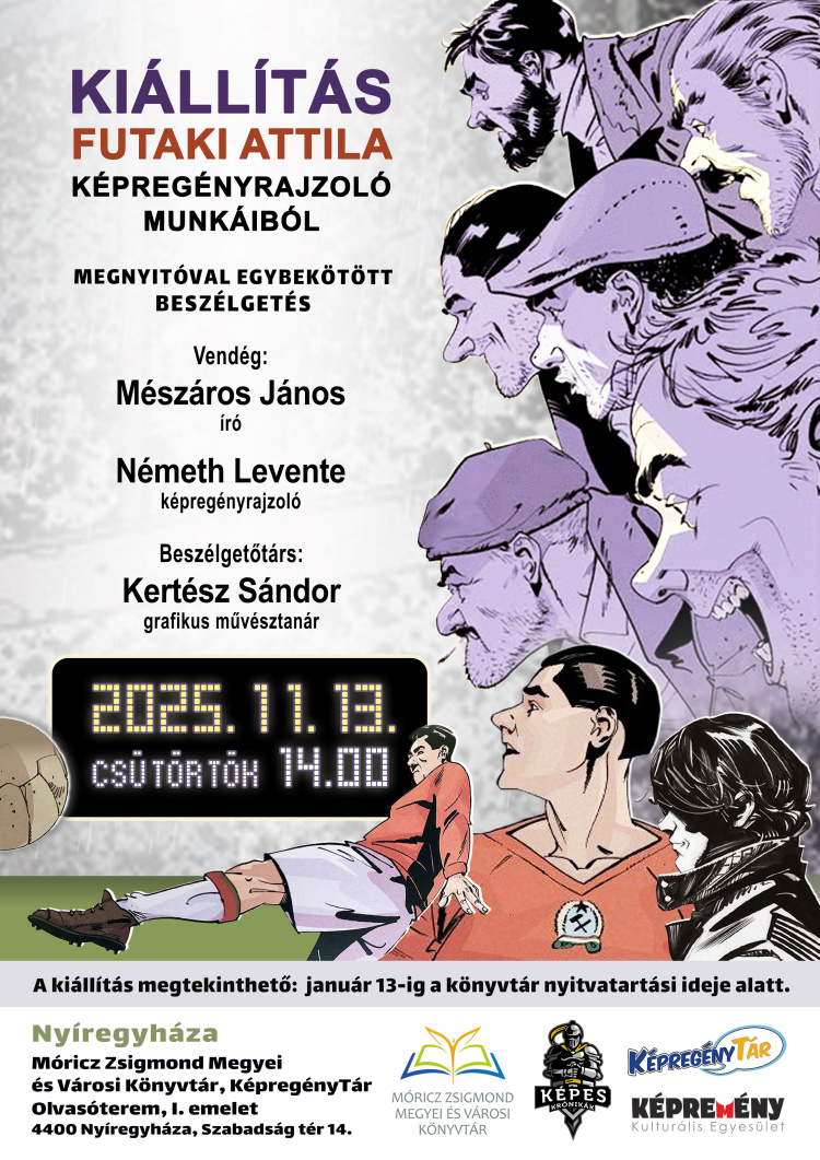 A Móricz Zsigmond Megyei és Városi Könyvtár ismét különleges kulturális eseményre invitálja az érdeklődőket: 2025. november 13-án (csütörtökön) 14.00 órakor nyílik meg Futaki Attila, nemzetközileg is elismert képregényrajzoló kiállítása a könyvtár Képregénytárában.