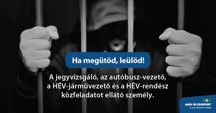 Ma újabb támadás érte a MÁV-csoport közfeladatot végző munkatársát. Az idei évben már 113 alkalommal támadtak rá kollégáinkra agresszív utasok, akik legtöbbször érvényes menetjegy nélkül utaztak. A MÁV-csoport célja, hogy munkatársai biztonságban végezhessék a munkájukat és egyetlen bűncselekmény se maradjon jogkövetkezmény nélkül. Munkatársaink közfeladatot ellátó személyek, így az őket ért bántalmazás akár börtönbüntetéssel is járhat. A MÁV-csoport a munkatársai ellen elkövetett erőszak – akár szóbeli, akár fizikai bántalmazásról van szó – minden formáját elítéli, és minden egyes esetben rendőrségi feljelentést tesz.
