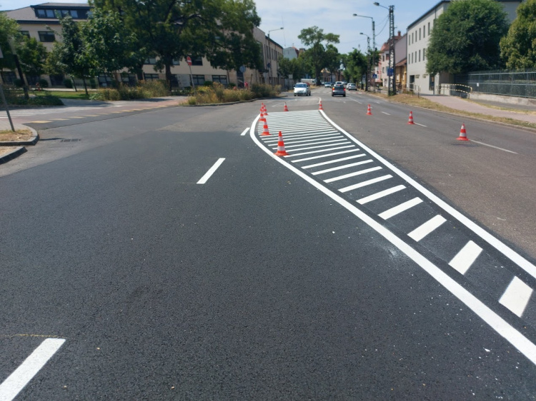 Itt nagy felületen újult meg az aszfaltburkolat az elmúlt napokban. Ezt követően újultak meg az útburkolat jelzései.