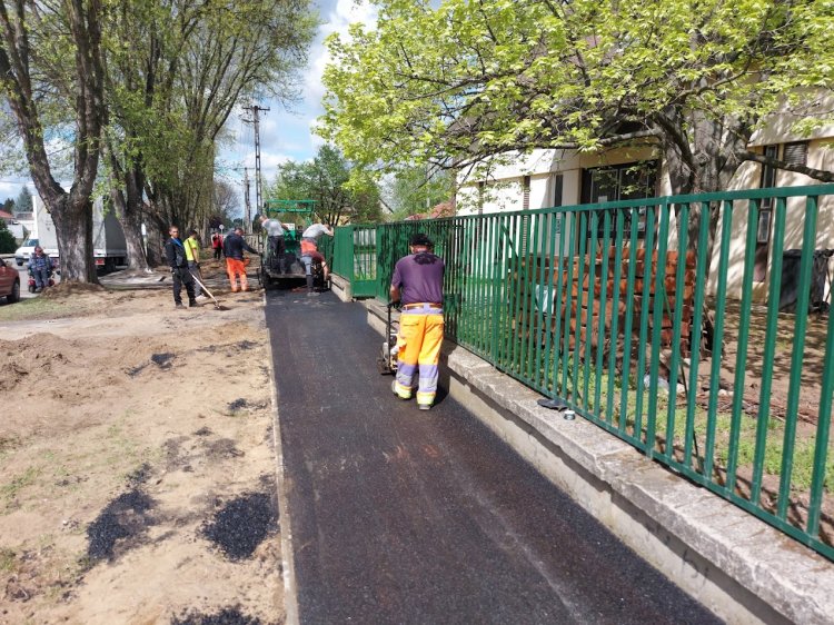 Aszfaltozzák a járdát a Bóbita utcában a Petőfi Sándor iskola előtt.