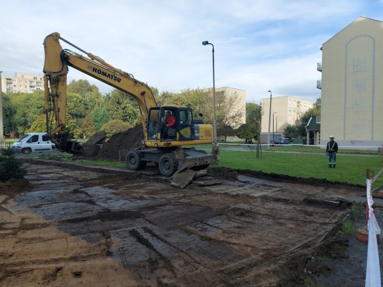 Megkezdődött a vadonatúj parkoló kialakítása a Fazekas János tér 15. szám előtt.